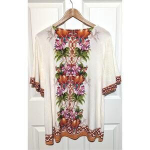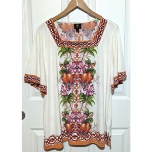 JM Collection Julia Jungle Cream Square-Neck Short Bell Sleeves Top Plus Size 1X