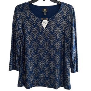 JM Collection Ladies' Intrepid Blue Jacquard Keyhole Sz S NWT🏷 gold accents