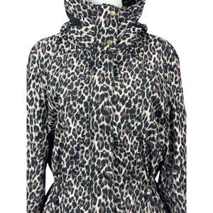 JM Collection Leopard Coat Jacket Womens M Brown Black Belted Waist Snap Button