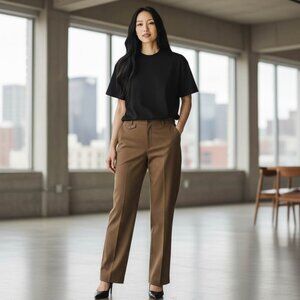 Great Career pants. Features a front zip and button closure. Perfect pair of pants. They are 63% polyester, 33% rayon and 4% spandex. They have been freshly laundered and sanitized. Only selling because I can't fit in them anymore. We are a smoke free, pet friendly home. Measurements are approximate and to the best of my ability. Lying flat.