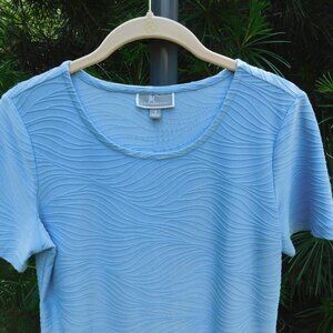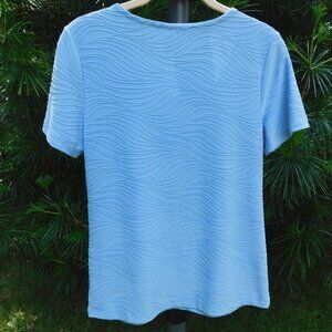 JM Collection Light-blue Stretchy Textured Knit Short-Sleeve Top