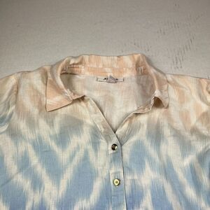 JM Collection Linen Button Down Shirt Printed 3/4 Sleeve Casual Top Size 12