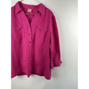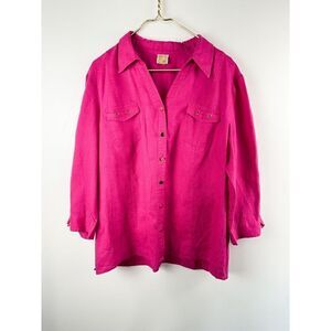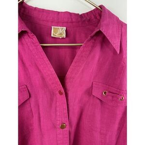 JM Collection Linen Gold Button Shirt Top Women’s Sz XL Roll Tab Sleeve Pink