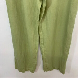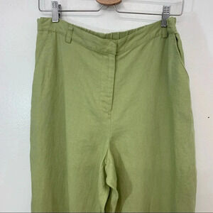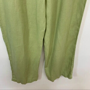 JM Collection Linen Pants Woman Size 12 Green Pockets Elastic Back Lightweight