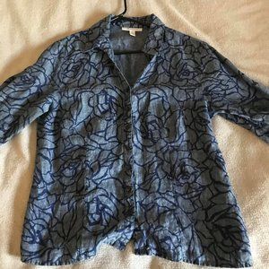 JM collection linen shirt with an abstract rose pattern. Like new. Size 12. Measurements: Pit: 19.5", Sleeve: 16", Shoulder: 16.5", Length: 24"