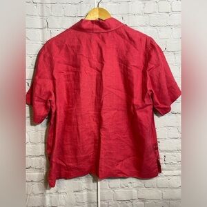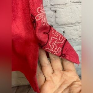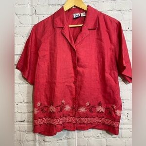 JM Collection Linen Top Womens Size Medium Button Up Floral Hem Embroidery