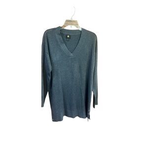 JM Collection Low V Tunic Sweater Gray Sz M NWT Side slits with silver buttons.