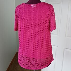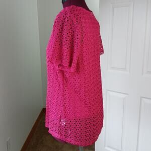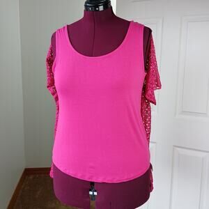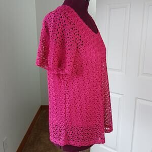 JM Collection Magenta Lace Layered Tee 2X short sleeve lightweight knit 2-in-1