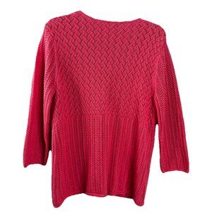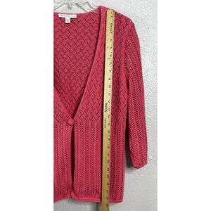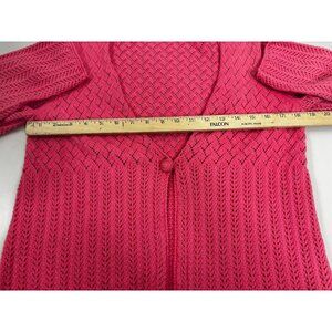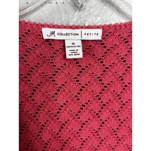 JM Collection Medium Petite Pink Open Knit Short Sleeve Cardigan 100% Cotton EUC
