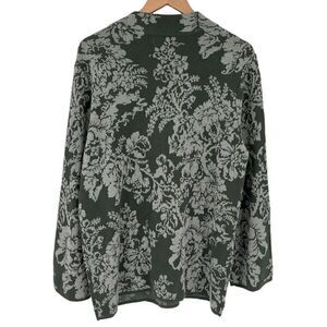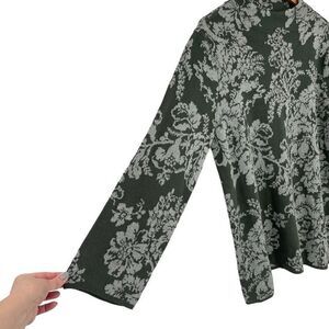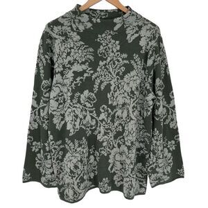 JM Collection Mock Neck Metallic Floral Sweater Women XL Green Silver Holiday