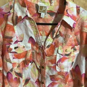 Chic JM Collection blouse with a vibrant floral pattern. Ideal for adding color to your wardrobe.