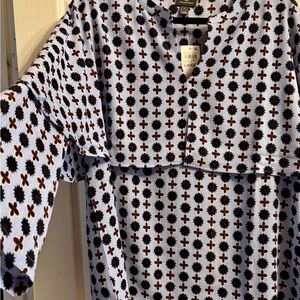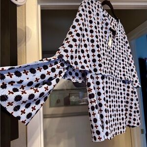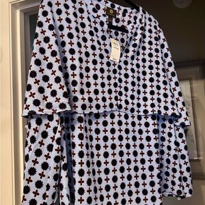 Chic top with a vibrant multicolor pattern. Ideal for versatile styling. I bought them in both colors and two sizes. Looks great on! True to size and flattering.