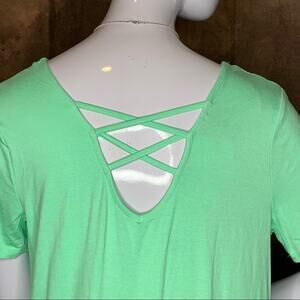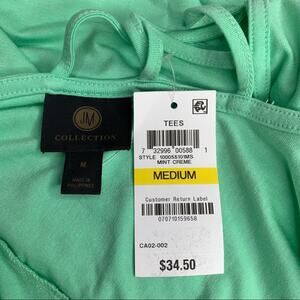 JM Collection NWT Low cross laced back Top Short Sleeve Size M Pistachio Green