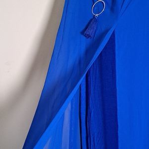 JM Collection Necklace Overlay Maxi Dress in Deep Cobalt Blue