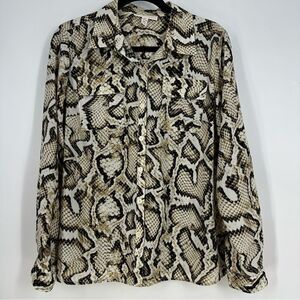 JM Collection Neutral Snakeprint Button Front Blouse Top Sz 14P