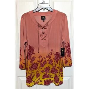 NWT JM Collection Women's Ombre Floral Print Lace-up Tunic Top Size Large (L)