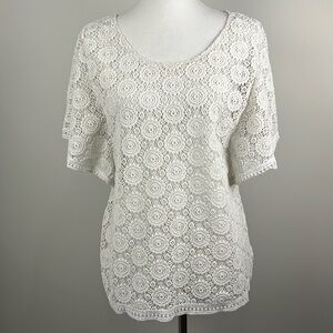 JM Collection Open Crochet Angel Sleeve Top Size M Cottage Boho Hippie Festival