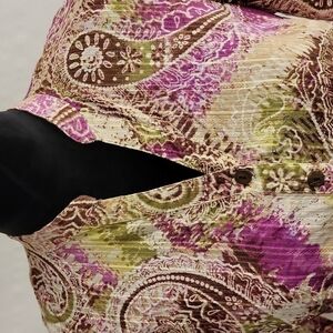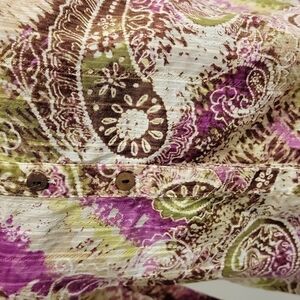 Colors: green, cream, brown, fuchsia (purple/pink)