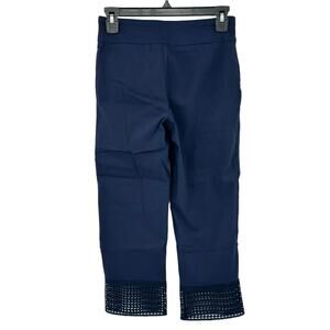 JM Collection Pants Womens PP 0P 2P Petite Crop Capri Navy Pull On Stretch Lace