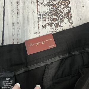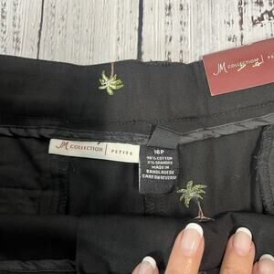 JM Collection Pants size 16 Petite Black Palm Trees Hidden Stretch Waistband