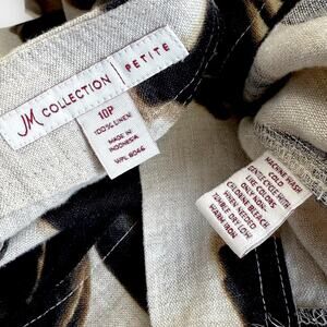 JM Collection Petite 100% Linen Floral 3/4 Sleeves Button Up Top Blouse Size 10P