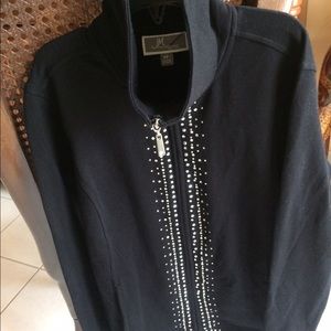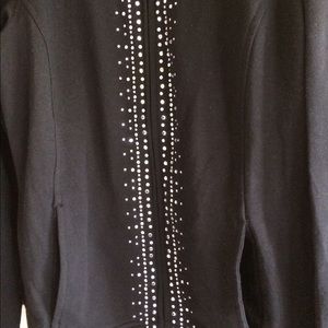 NWT deep black long sleeve charming cardigan. Preppy but practical, this flattering cardigan sweater strikes the perfect balance between casual and chic. The elongated silhouette offers full coverage, while the easy, side-slit hem elevates the comfortable fit. Contrast tipping along with a collar and zippered-front, placket lends a slight nod to classic varsity styling. 2 side pockets.