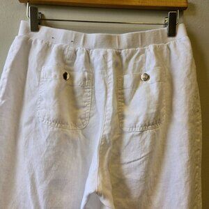 JM Collection Petite 6P White Linen Wide-Leg Pants Drawstring Waist & Pockets
