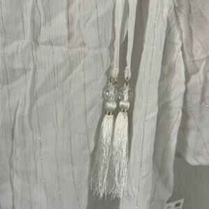 JM Collection Petite Blouse Tie-Shoulder Tassel Metallic Top White Size PL NWT