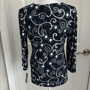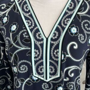 Elegant floral V-neck top with intricate patterns. Perfect for any occasion.