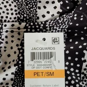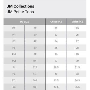 For a look that works any day of the week, pair this petite jacquard top from JM Collection with your favorite pants and skirts. Crew neckline Pullover styling Three-quarter sleeves Allover textured jacquard print Fitted Hits at hip Polyester/spandex; flocking: nylon Machine washable Imported Web ID: 10587846Size: Womens SP Condition: New