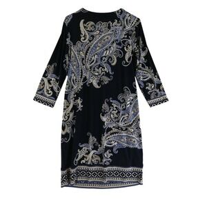 Give your wardrobe a piece you can style for any day of the week with this petite sheath dress by JM Collection. Tailored fit through the chest, waist, and hips; sits close to the body Designed to fit and flatter 5'4" and under frame V-neck; sheath silhouette Pullover style 3/4-sleeves Stud embellishments at neckline Unlined Polyester/spandex Machine washable Imported Web ID: 11760613