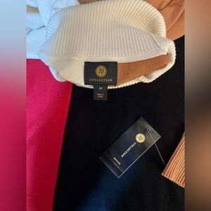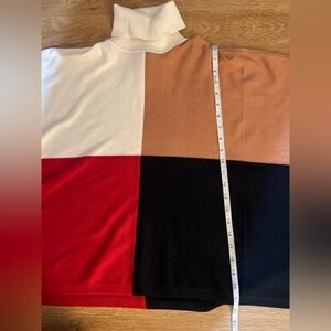 JM Collection Petite Turtleneck Color Bloqued Buttom Trim Poncho Sweater
