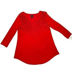 JM Collection Petite V-Neck Sequined Top New Red Amore XL
