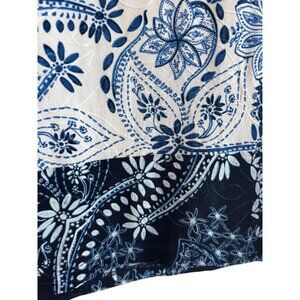 This JM Collection Petite women's short-sleeve knit top, crafted from a polyester-spandex blend, offers a relaxed, flattering fit. Its intricate blue and white floral pattern ensures classic appeal, while the lightweight material enhances comfort. Perfect for versatile styling options and everyday wear.