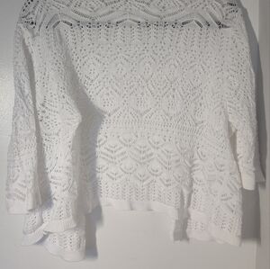 JM Collection Petite X-Large Cardigan Lace White 3/4 Sleeve Crochet #479