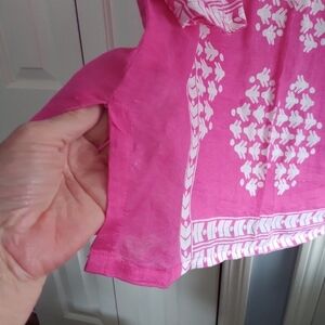 JM Collection Pink & White LINEN V Neck Pullover Beach Coverup Top Blouse XL