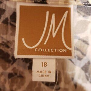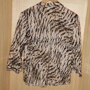 JM Collection plus women’s animal print ¾ sleeve textured button down blouse 18. Gently used condition. Measurements are: 20” sleeve, 27” from shoulder to hem, and 22 ½" from armpit to armpit.