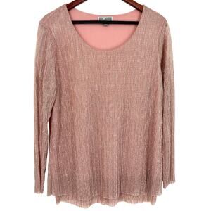 JM Collection Plus Size 1X Super Sparkly Formal Pink Blouse Shirt Top Christmas