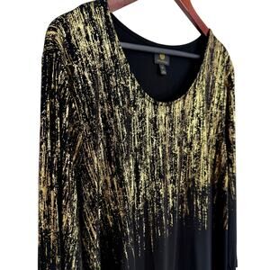 JM Collection Plus Size XXL 2X Gold Sparkly Black Formal Blouse Shirt Top Dinner