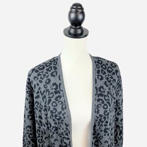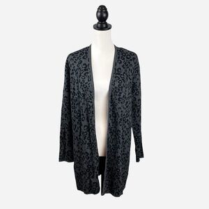 JM Collection Printed Open Front Cardigan M Gray Heather NEW