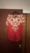 Brighten your look with this red floral top. Features short sleeves and a vibrant design.