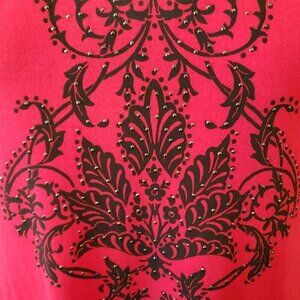 It's HOT! JM Collections Women's Red Hot & Black Beaded Blouse w/ Flared Sleeve, NWT