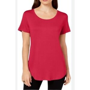 JM Collection Red Tee Top Short Sleeve Scoop Neck Casual Size XS NWT