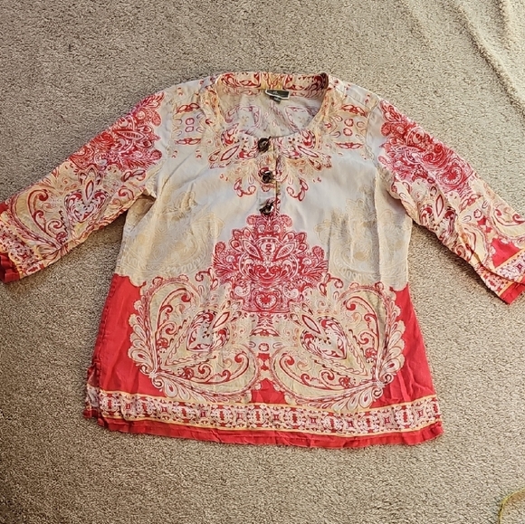 JM Collection Red and Cream Patterned Top