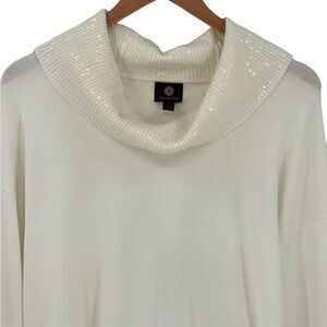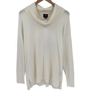 JM Collection Sequin Cowl Neck Sweater Soft Neo Natural Ivory Women Small NWT