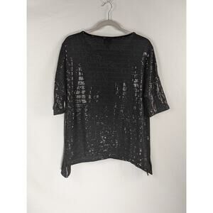 JM Collection Sequin Top Half Sleeve Black Small Scoop Neck Asymmetrical Hem