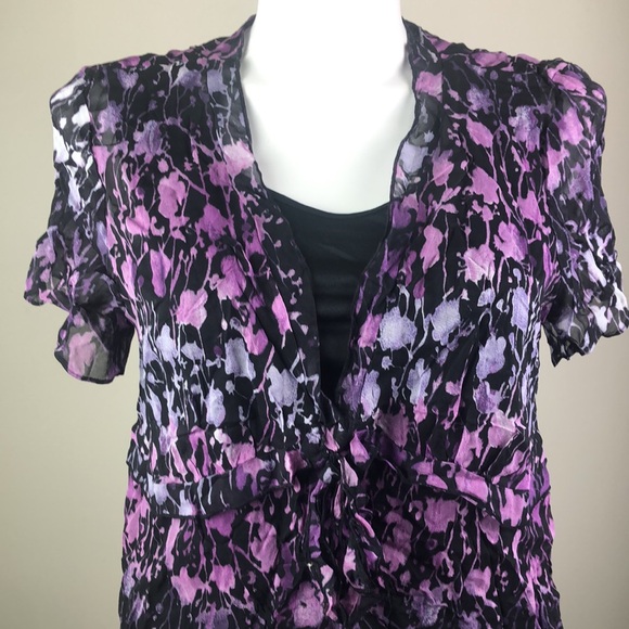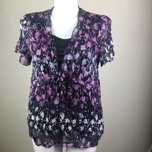 JM Collection Sheer Shell Top Abstract Print