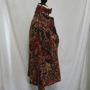 JM Collection Shiny Zippered Blazer Zip Up Top Sequins Animal Print Vintage Sz M