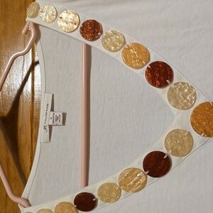 White JM Collection short sleeve tee with flat beads embellishments. Takes your tee up a notch.