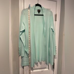 JM Collection Size LP Seafoam Open Front Gold Button Cuff Cardigan Lightweight